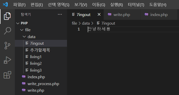 // file_put_contents(파일명, 내용);