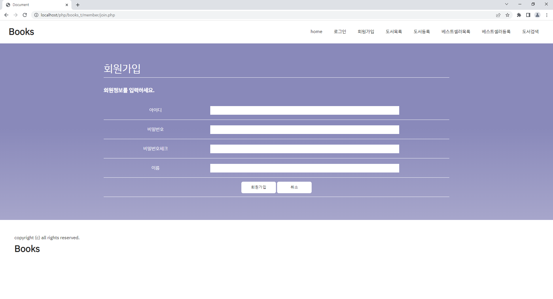 | [PHP] Book Blog(Books) 만들기 2_도서등록 / 자세히보기 / 수정 / 삭제 (0) | 2022.06.02 |