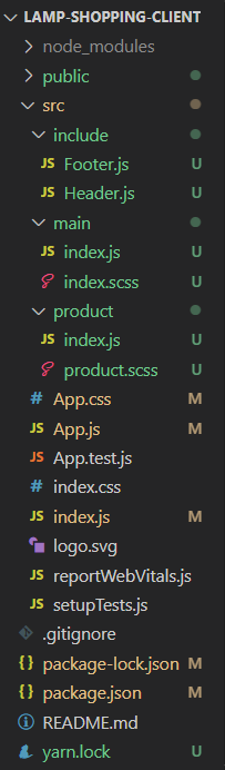 5. product/index.js를 위한 product/product.scss 스타일 생성 후 product/index.js에 import './index.scss'; 해주기
