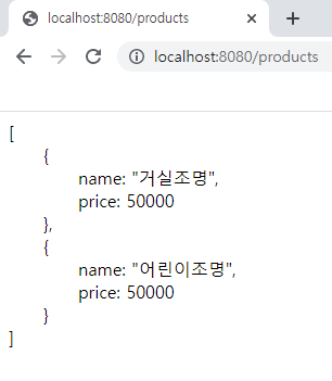 key는 products로 사용 (왜냐 server.js에 상품들이 products란 이름안에 구현되었기 때문)