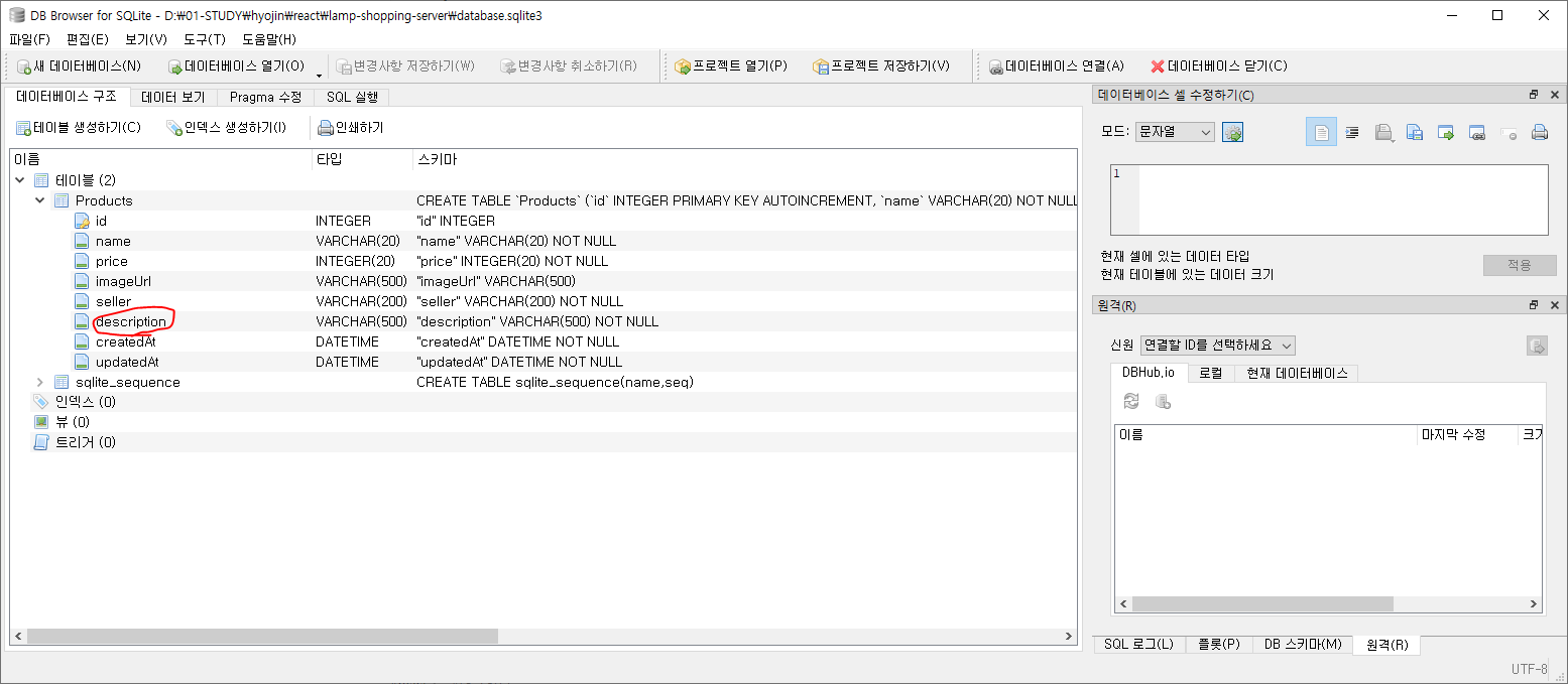 8. 데이터베이스 삭제 후 description 컬럼 추가