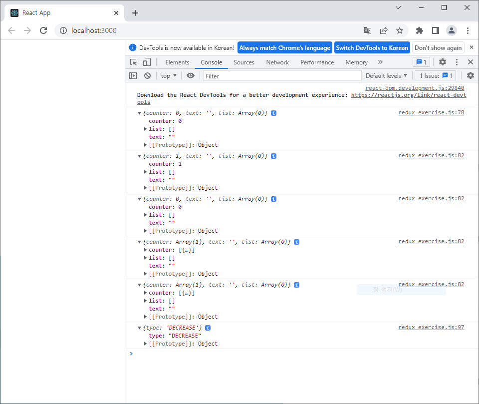 // store.getState() 할 때의 결과 동일함