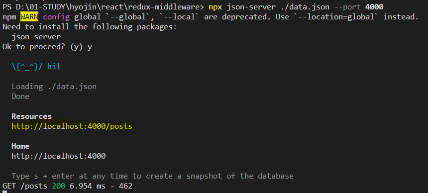 npx json-server ./data.json --port 4000