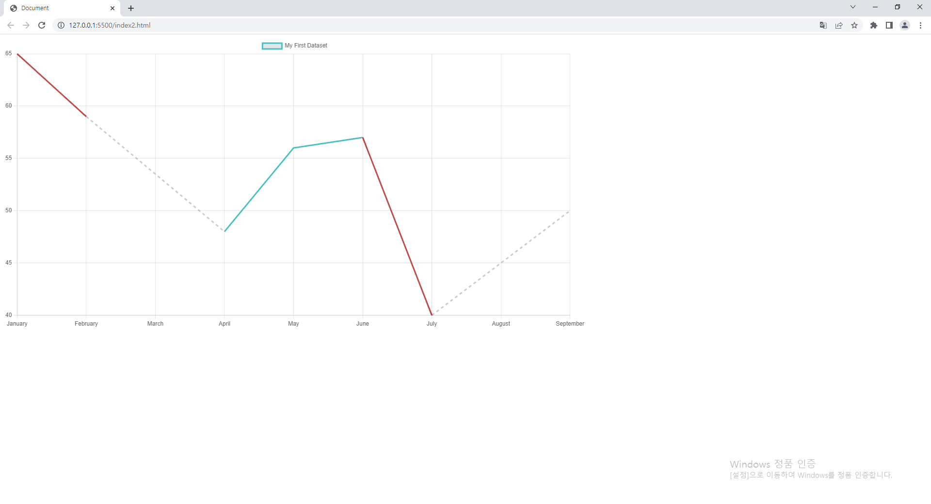 data: [65, 59, NaN, 48, 56, 57, 40, NaN, 50], // NaN일 경우 skip