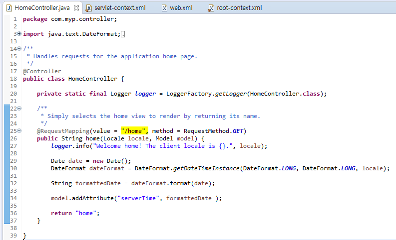 여기서의 base-package는 com.myp.controller이므로 그 package안에 있는 controller를 인식하게 됨