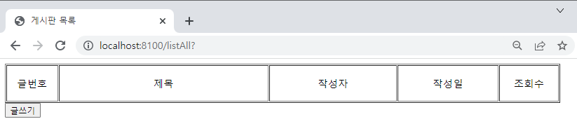 WAS 구동시 home.jsp 페이지에서 게시판 목록(listAll.jsp)으로 가는 기능 구현