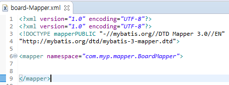 - 프로젝트안에 src/main/resources 안에 mapper 폴더 생성 후 board-Mapper.xml 생성