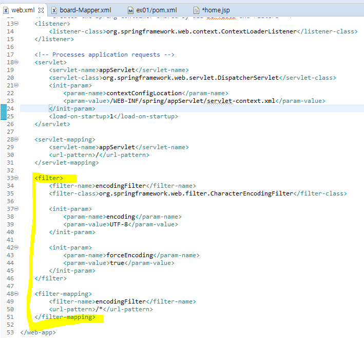 4) web.xml에 한글필터 추가