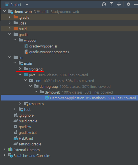 터미널을 열고 프로젝트 가장 상위 디렉터리(demo-web)로 가서,