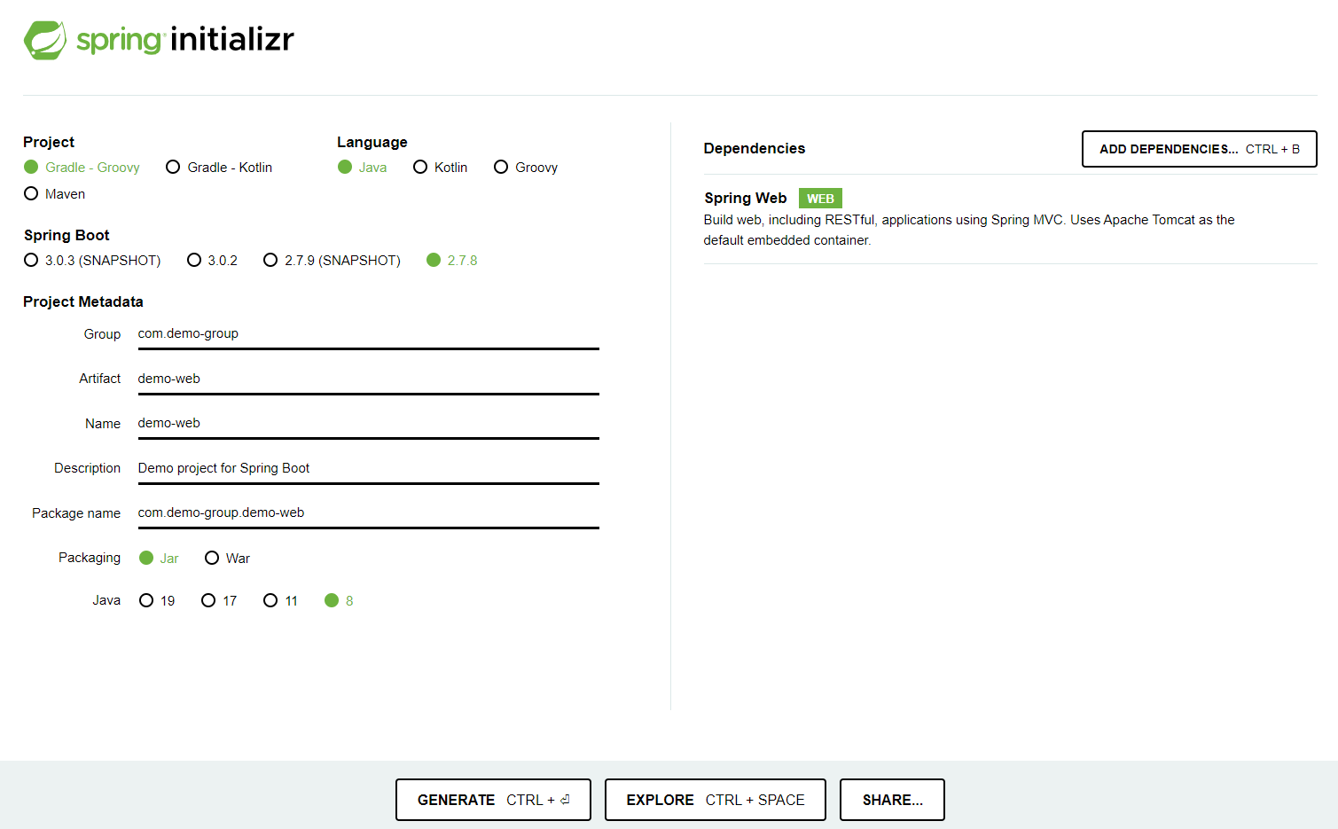 1. Spring Initializr에서 스프링 폴더 초기 생성