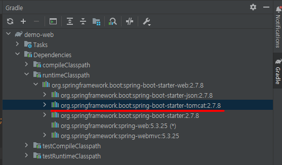 오른쪽에 Gradle 눌러서 저기 가보면 tomcat 있다 허허