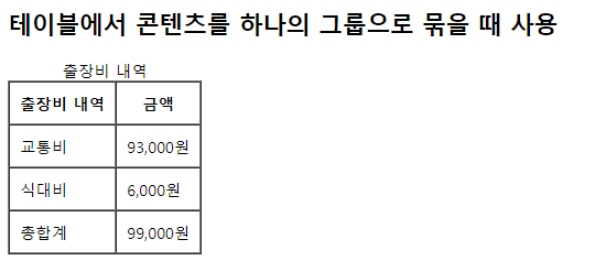 <caption>출장비 내역</caption>