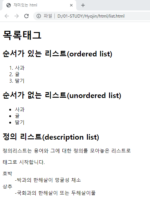 <h1>목록태그</h1>