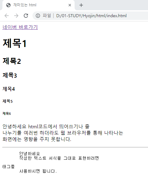 안녕하세요 html코드에서 띄어쓰기나 줄<br>