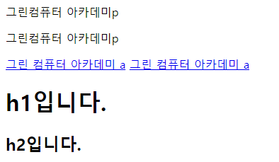 <a href="#">그린 컴퓨터 아카데미 a</a> <!-- 옆으로 쌓임 (인라인태그) -->