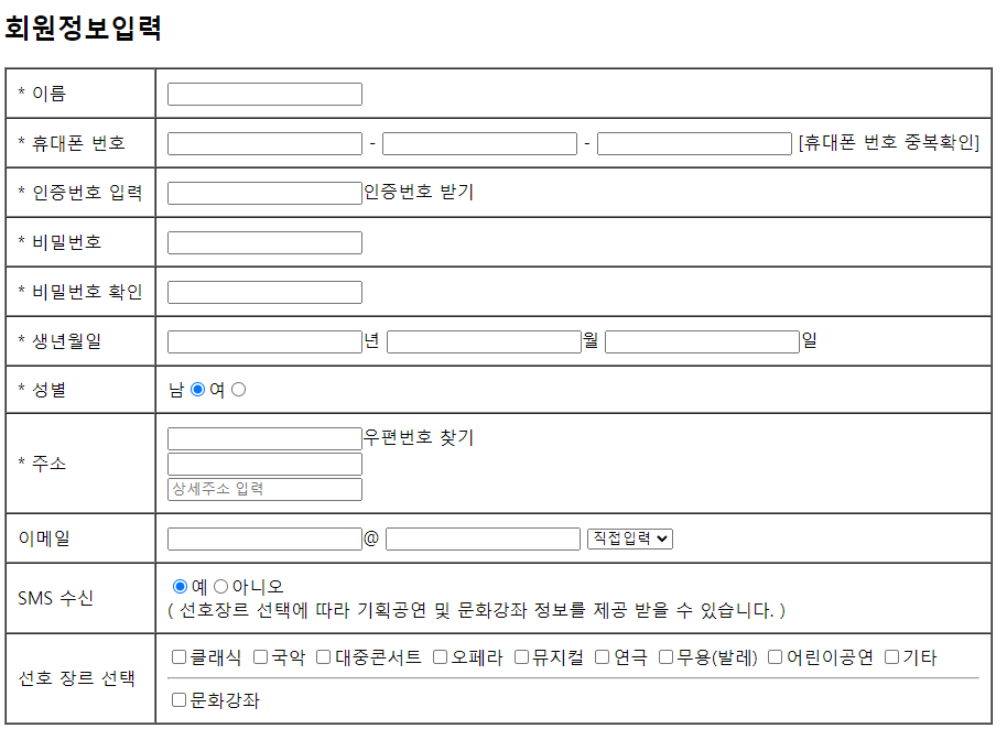 <br>( 선호장르 선택에 따라 기획공연 및 문화강좌 정보를 제공 받을 수 있습니다. )</td>