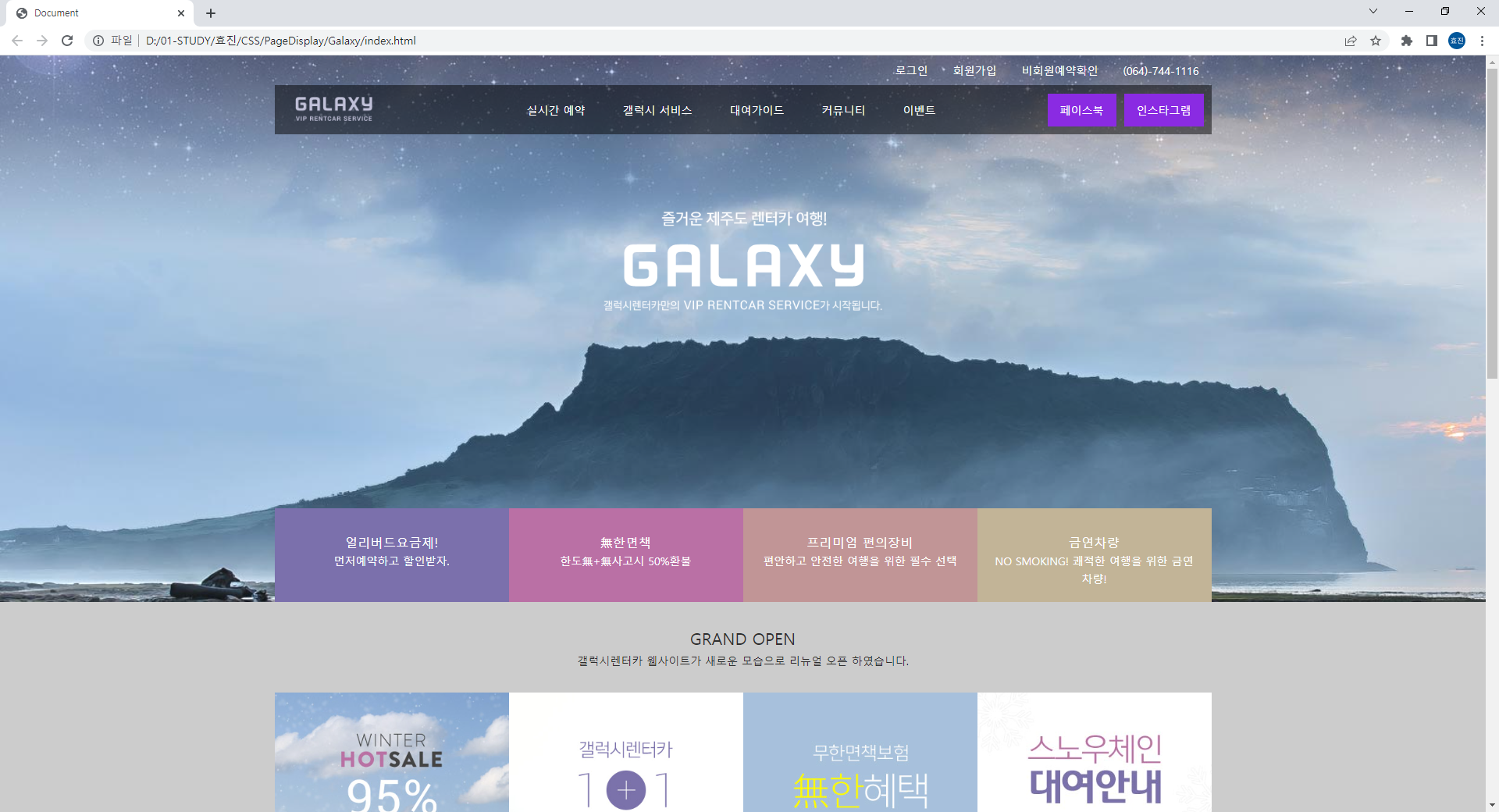 <p>갤럭시렌터카 웹사이트가 새로운 모습으로 리뉴얼 오픈 하였습니다.</p>